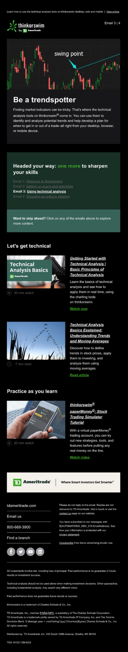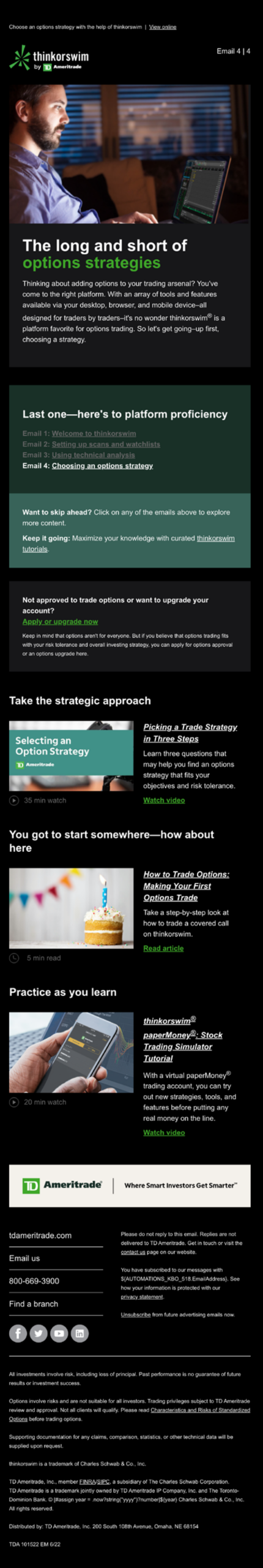 To create confident long-term users, the onboarding experience was rethought. A series of four emails, each building on the previous one, guided traders through platform setup and trading execution while providing resources for continued learning. Working in an agile style, I provided strategic creative oversight, aligning on goals with the core team while empowering them to make autonomous creative decisions.